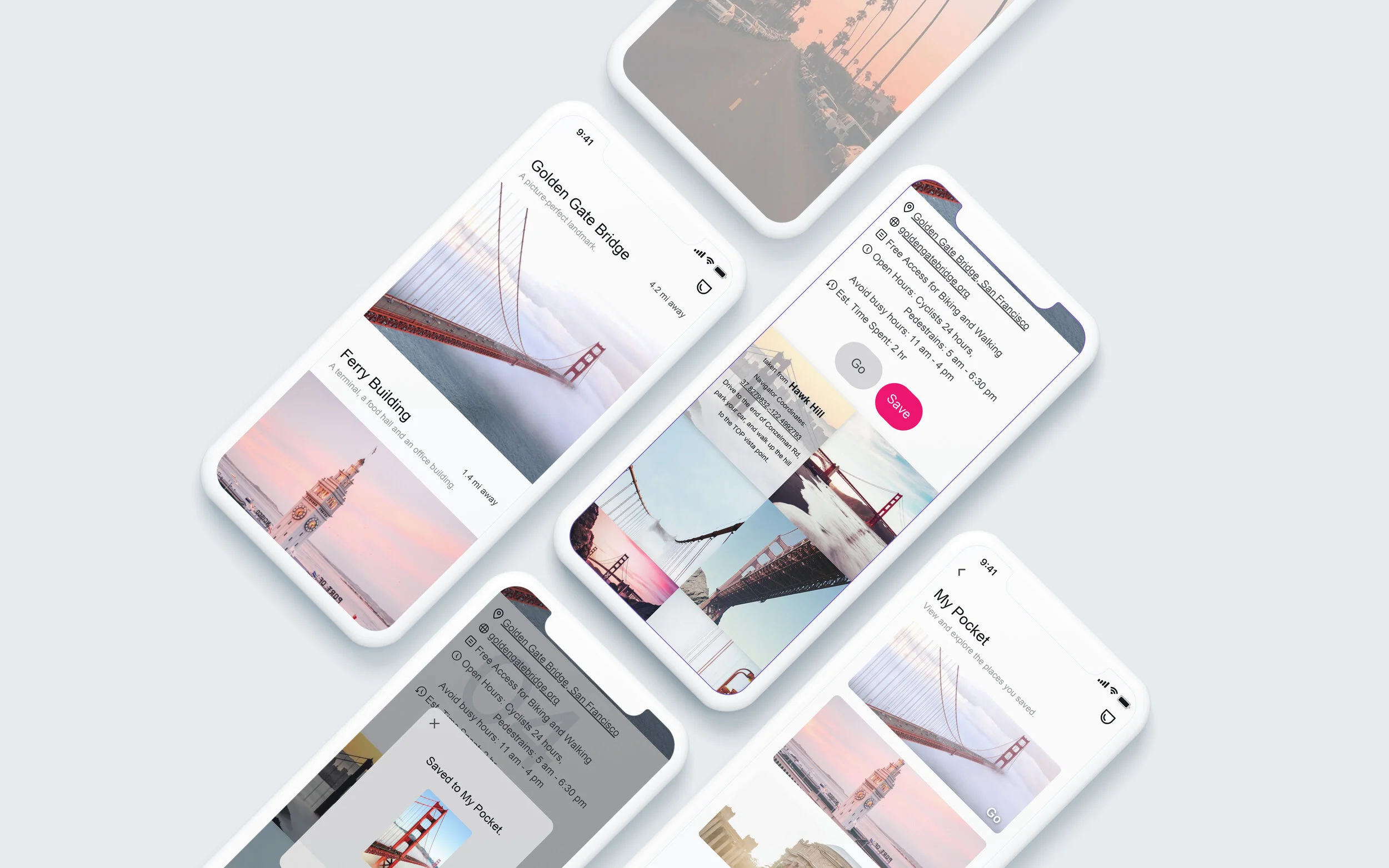 For Sarah, she can view all the places, view details of a place of her interest, and then save the places she likes in the “pocket” for later use. And she can get directions to the place she likes right away.
