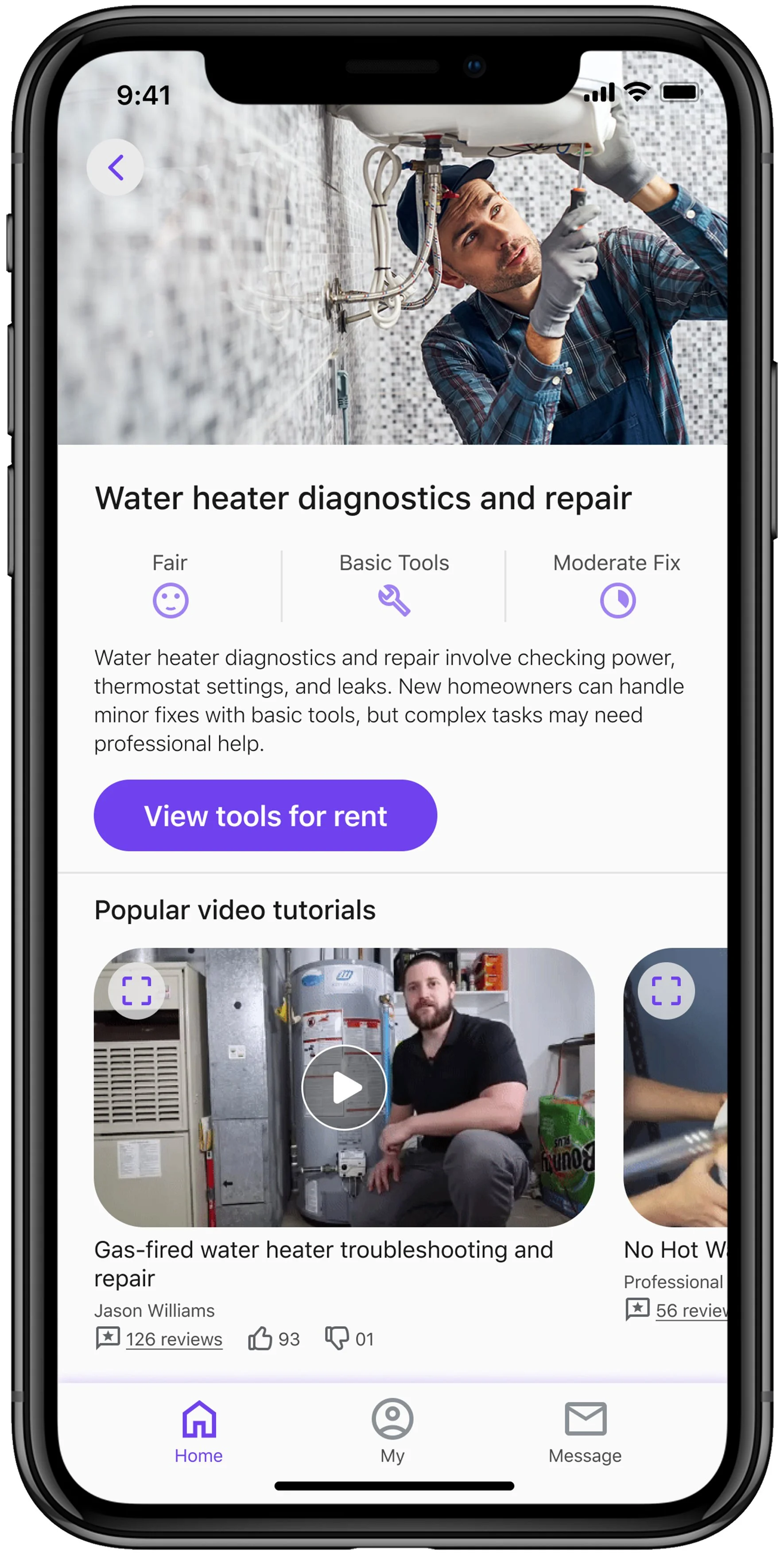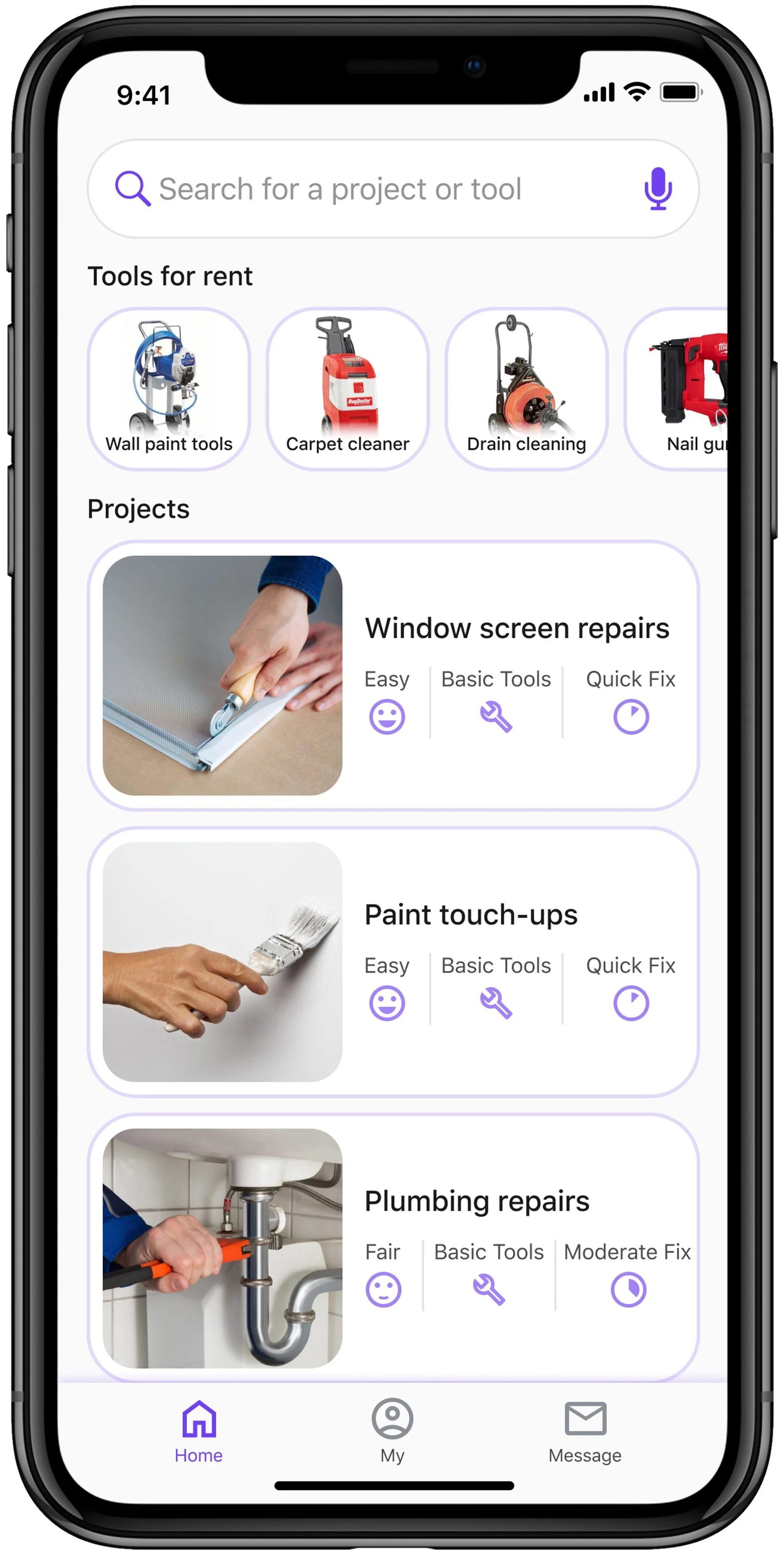 Design a peer-to-peer tool rental platform so that new homeowners can easily obtain relevant knowledge and rent the tools they need.